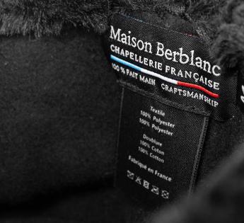 Este gorro invernal afirma de inmediato su carácter. Líneas estructuradas. Volumen controlado. La parte superior en terciopelo de tacto suave contrasta con una solapa de piel sintética, envolvente y protectora. La Etiqueta metálica Maison Berblanc resalta un característico elegante y seguro.