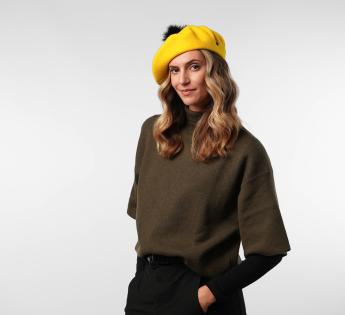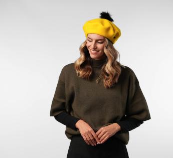 Fabricada en pura lana de merino, esta Boina Vasca se adorna con un pompón juguetón, ofreciendo un toque de fantasía a un clásico reinventado. El pompón de piel sintética negro profundo contrasta con el color vibrante del fieltro.