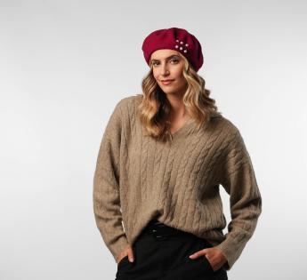 Su línea sencilla está realzada por adornos de perlas nacaradas, que aportan un toque de elegancia discreta y femenina. Entre el espíritu retro y la sofisticación contemporánea, esta boina se adapta a todas las ocasiones: un accesorio aparentemente simple, pero decididamente elegante.