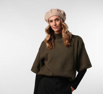 Su línea sencilla está realzada por adornos de perlas nacaradas, que aportan un toque de elegancia discreta y femenina. Entre el espíritu retro y la sofisticación contemporánea, esta boina se adapta a todas las ocasiones: un accesorio aparentemente simple, pero decididamente elegante.