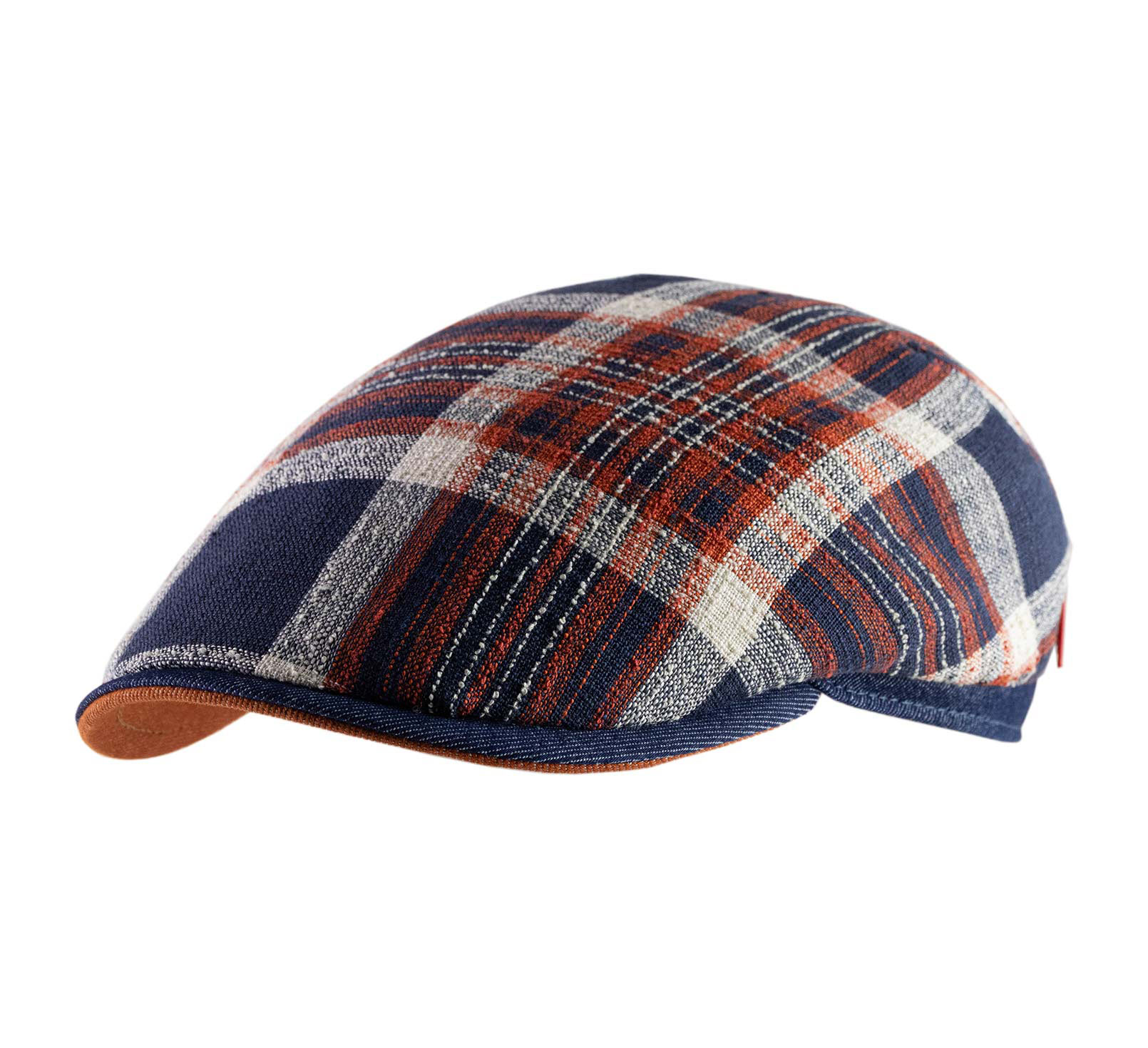 Gorra plana en un corte ajustado. Es confeccionada en un tejido texturizado de motivos de cuadros. El tejido es reforzado con tela, lo que permite mantener la forma haciendo que el conjunto sea resistente.