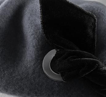 Esta boina reinventada juega con los contrastes con audacia y refinamiento. Su forma vasca, de corte medio, se retuerce con un dúo de detalles fuertes: un lazo de terciopelo trenzado a mano y dos ojales metálicos que modernizan la silueta. Un equilibrio sutil entre tradición y diseño, pensado para una apariencia femenina segura.