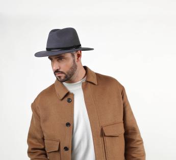 Sombrero traveller realizado con fieltro de alta calidad que se destaca particularmente por su flexibilidad y la dulzura de su tacto. El modelo es decorado con un efecto de ante a través el adorno de cuero de su cinta bimaterial. Se presenta a nosotros en un color discreto, perfecto para la temporada.