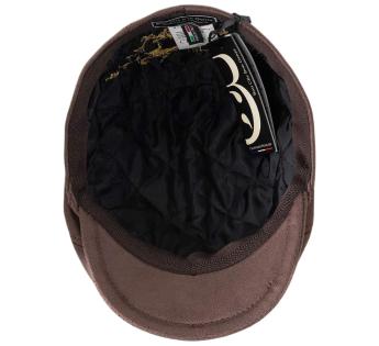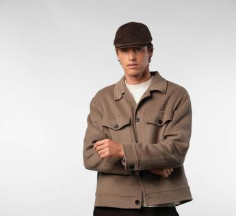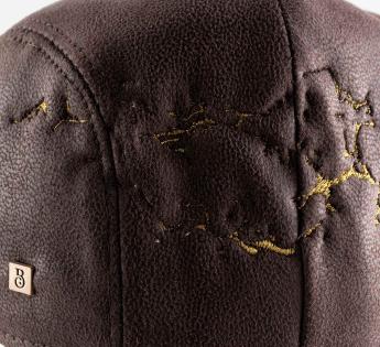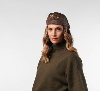 Con su material flexible al tacto como piel de melocotón, esta Gorra duckbill evoca con elegancia la pátina de un cuero envejecido. Su acabado marrón profundo está discretamente animado por un patrón craquelado dorado bordado en la parte trasera, un guiño al arte del kintsugi, donde la imperfección se vuelve preciosa.