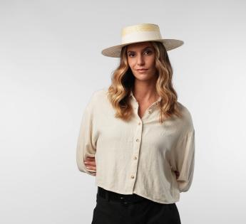 ¡Con la moda, todo es posible! Este verano, el canotier se autoriza las alas largas de la capelina para un resultado femenino muy de moda. De paja, el sombrero es pues aireado y muy útil bajo el sol, a orillas del agua, por ejemplo. Su diseño logrado seduce por su simplicidad y convencerá por su adaptabilidad.