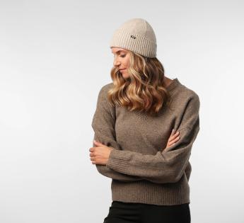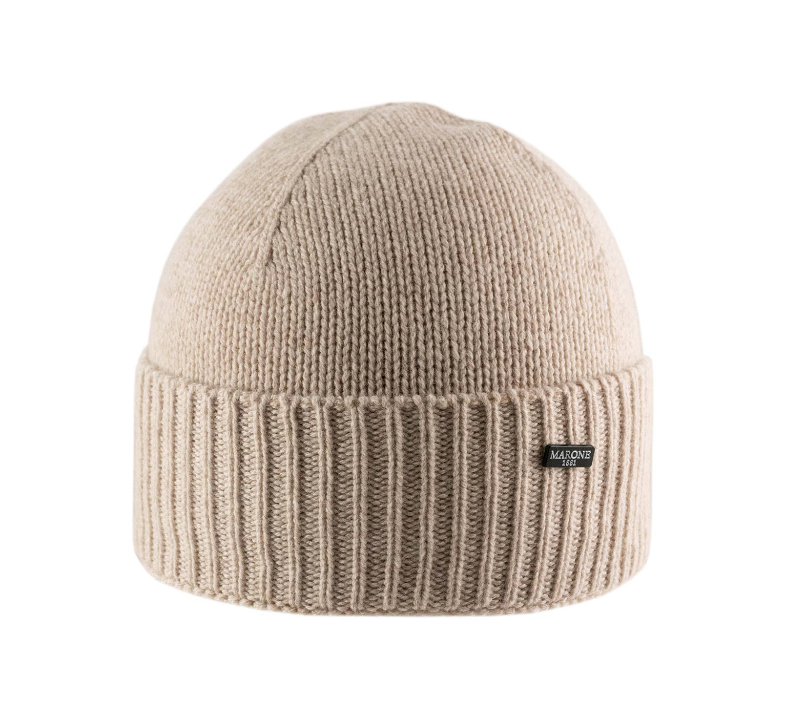 Gorro de lana fina, de una sola capa, suave y transpirable. Su solapa se adapta: con un pliegue, calienta las orejas; desplegado, se convierte en un gorro oversize; o enrollado hacia arriba, se transforma en un Gorro Docker.
