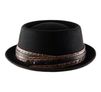 Emblemático del medio de la música, el sombrero pork pie es de una nota que nunca pasa de moda sobre todo vestido. Será agradable llevarlo gracias al noble confort de su noble materia.