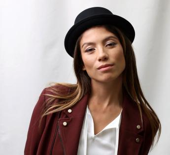Modelo porkpie de cuero y que presenta una trenza envolviendo el sombrero. La original creación tiene también una contera de metal negra para más brillo y sofisticación. Para este invierno, además de cálidamente cubrirse, disfrutaremos ciertamente del bonito confort del cuero y del trenzado.