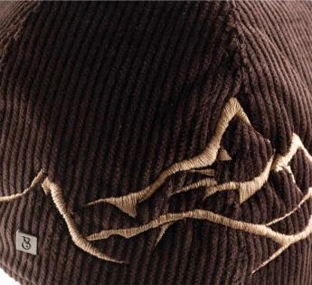 En la parte trasera, un paisaje de montaña estilizado firma la pieza con un gesto fuerte. Este motivo está bordado en nuestro taller de Lyon, con precisión y sentido del detalle. La inspiración trampera toma aquí un giro contemporáneo, impulsado por el contraste entre el adorno gráfico y el terciopelo aterciopelado. Una gorra pensada para quienes aman las piezas sobrias con una verdadera personalidad.