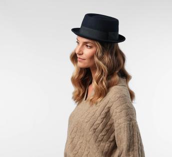 Por un estilo jazzy y elegante a la vez, adopte este Porkpie muy chic con su banda de forro, sus bordes relevados y su casquete ligeramente bajo que le atribuirán todas las características de este legendario sombrero de las estrellas. Pues un modelo clasísimo, disponible en varios colores.