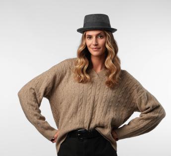 Por un estilo jazzy y elegante a la vez, adopte este Porkpie muy chic con su banda de forro, sus bordes relevados y su casquete ligeramente bajo que le atribuirán todas las características de este legendario sombrero de las estrellas. Pues un modelo clasísimo, disponible en varios colores.
