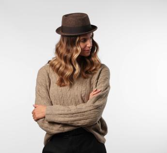 Por un estilo jazzy y elegante a la vez, adopte este Porkpie muy chic con su banda de forro, sus bordes relevados y su casquete ligeramente bajo que le atribuirán todas las características de este legendario sombrero de las estrellas. Pues un modelo clasísimo, disponible en varios colores.