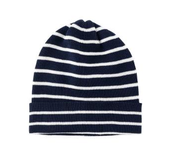 Boina corta con rayas del reverso modulable y desplegable. Es confeccionada en un tejido ligero y fino. Este diseño hace de ello un accesorio veraniego adaptado y placentero de llevar.