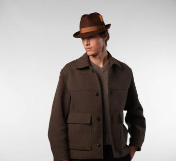 Su trenza de grosgrain tono sobre tono, acentuada con una Etiqueta metálica discreta, refuerza su estética depurada. Ideal para días húmedos o de viaje, este sombrero de fieltro repelente al agua combina protección, flexibilidad y un mantenimiento impecable. Un imprescindible para los amantes de los sombreros prácticos, con un look cuidado y estructurado.