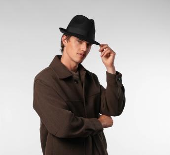 Su trenza de grosgrain tono sobre tono, acentuada con una Etiqueta metálica discreta, refuerza su estética depurada. Ideal para días húmedos o de viaje, este sombrero de fieltro repelente al agua combina protección, flexibilidad y un mantenimiento impecable. Un imprescindible para los amantes de los sombreros prácticos, con un look cuidado y estructurado.