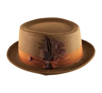 Sombrero porkpie elegante y distinguido equipado con un ala corta característica. Su copa reconocible al instante es decorada por una magnífica pluma, así como una cinta satinada. En cuanto al modelo, ha sido moldeado en una estructura ligera, pero suficientemente sólida para guardar su forma. Un modelo que añadirá a nuestros looks una nota irresistible.