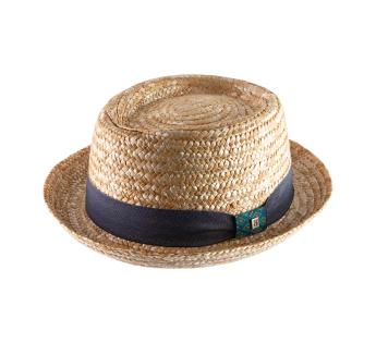 Sombrero porkpie para niño confeccionado a partir de trenzas de paza cosidas. La cinta es de mezclilla para un efecto atractivo de vaqueros. Su anilla de los motivos geométricos es completada por la insignia de nuestra marca BCBG Couture. El detalle añade así un toque de elegancia merecido.