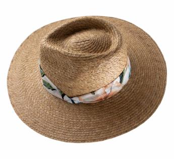 Este sombrero lo tiene todo para despertar el deseo de verano. Su línea flexible, su ala ancha y sus adornos florales evocan días luminosos, el aire marino y esas siluetas femeninas que parecen más ligeras bajo el sol.