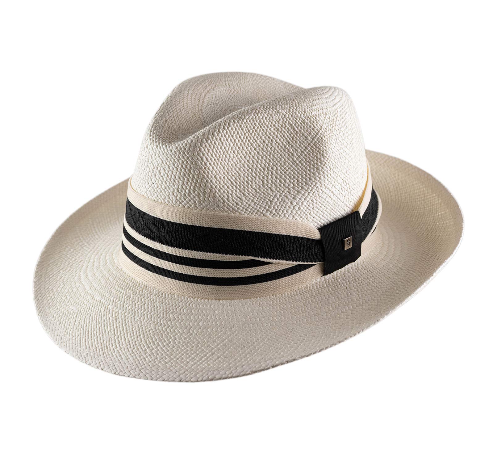 La elegancia artesanal y el estilo deportivo se encuentran en este excepcional sombrero Panamá, elaborado en nuestro taller de Lyon. Su galón de malla texturizada, inspirado en el polo, está realzado con un anillo de satén bicolor para un toque refinado. Un sombrero ligero y transpirable, perfecto para un look elegante y desenfadado.
