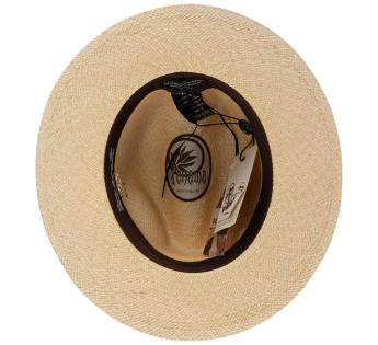 Este sombrero seduce por su línea sobria y cuidada, y revela su singularidad en un motivo calado, como un encaje delicadamente dibujado en las fibras del Sombrero panama. Un detalle precioso, casi como una joya, que capta la luz y define la silueta.