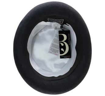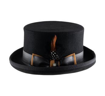 Sombrero de copa bajo con un estilo audaz, este modelo rompe los códigos con una elegancia atrevida. Confeccionado en nuestro taller de Lyon, combina un fieltro de lana italiano de alta calidad con acabados llenos de carácter: trenza de cuero sintético negro, doble lazo efecto cuero de gamuza, Etiqueta metálica y pluma removible para un toque de fantasía controlada.