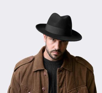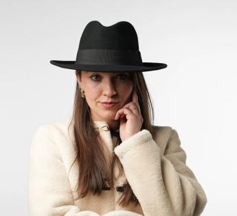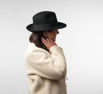 Amante del fieltro, este sombrero embellecerá su vestido simple, particularmente en invierno. Con su color sólido y su larga banda oscura, dará volumen y calor a su manera de vestir con un estilo depurado. Impermeable, es plegable y se transporta fácil.