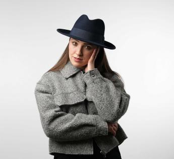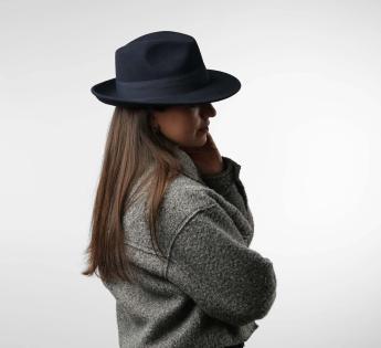 Amante del fieltro, este sombrero embellecerá su vestido simple, particularmente en invierno. Con su color sólido y su larga banda oscura, dará volumen y calor a su manera de vestir con un estilo depurado. Impermeable, es plegable y se transporta fácil.