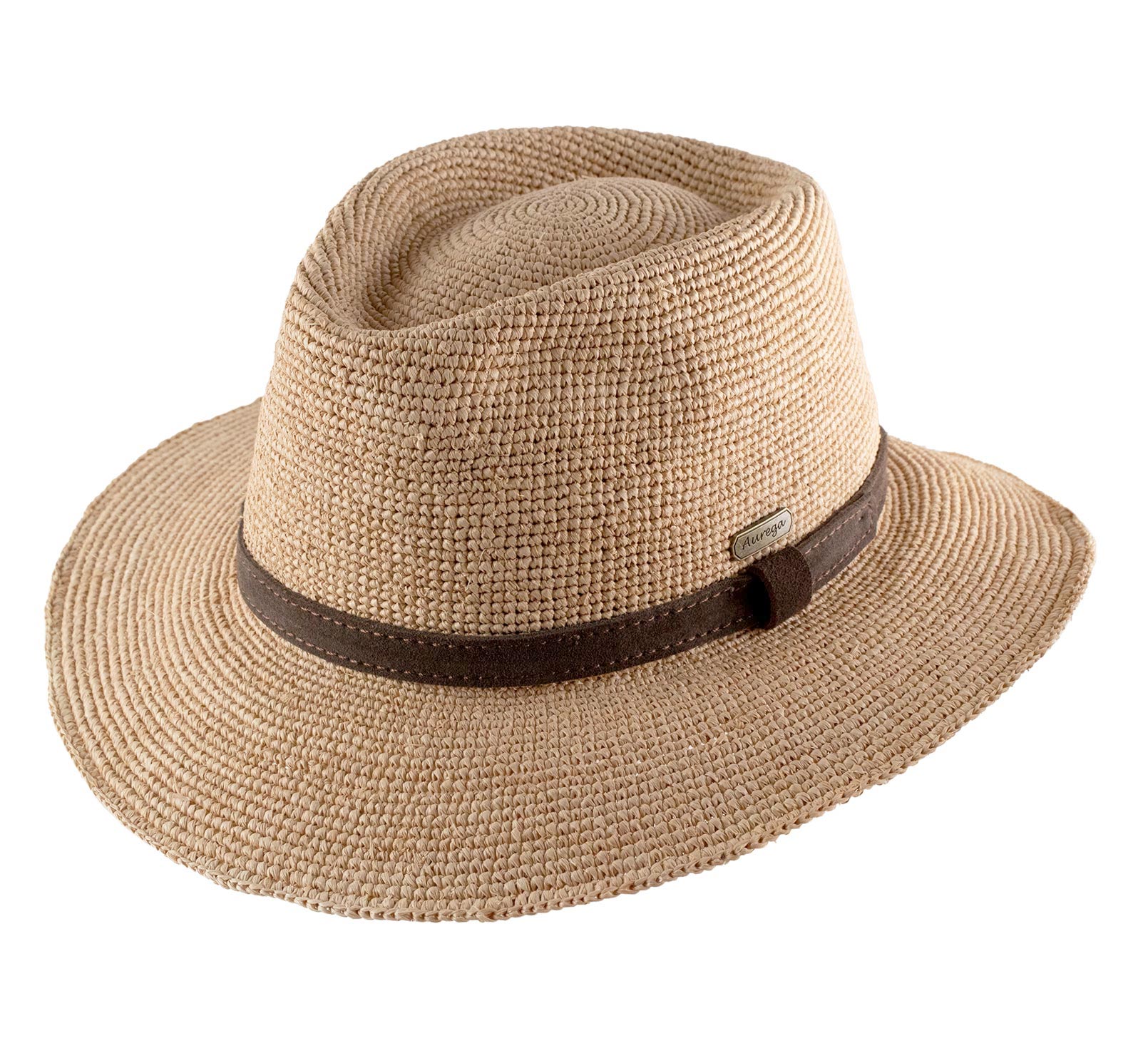Sombrero de paja de rafia tejido a crochet en una versión flexible y fina, con un ala de longitud media y versátil. Su tejido calado permite una mejor transpirabilidad durante su uso. El modelo será, por lo tanto, ligero, pero perfectamente resistente gracias a su confección de alta calidad.