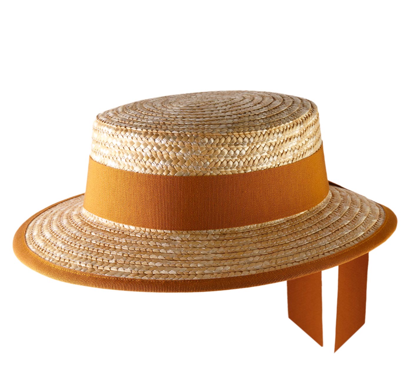 ¡El sombrero de los gondoleros de Venecia! Es éste. Es un canotier. Y este modelo es de paja acabado con una cinta de grano grueso. Criatura de una apariencia muy simple pero siempre, siempre, siempre eficaz en materia de elegancia.