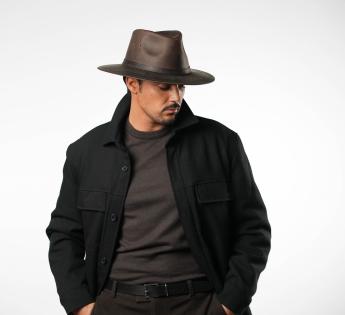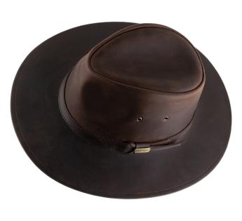 Aventura y carácter se dan cita con este Sombrero Caballero de cuero de búfalo firmado por Aurega. Su silueta estructurada y su cuero con pátina natural revelan un estilo audaz y atemporal. Relativamente rígido, mantiene un ala bien recta, conservando una ligera flexibilidad natural que acompaña el movimiento sin deformarse. Su ala ancha ofrece una protección eficaz contra las inclemencias del tiempo, y su copa alta alarga con distinción la línea del rostro.