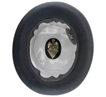 Adornado con una trenza de grosgrain discreta, juega la carta del refinamiento sin excesos. Perfecto para ceremonias, atuendos de ciudad sofisticados o siluetas de inspiración dandy, este sombrero trasciende las épocas con nobleza y distinción.