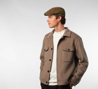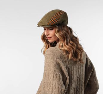 Una elegante alianza de cuero de gamuza y lana virgen, esta gorra plana cautiva con su corte ajustado y silueta estructurada. El patrón de tartán reinventado, en tonos naturales animados por matices más vivos, crea un juego de materiales impactante.