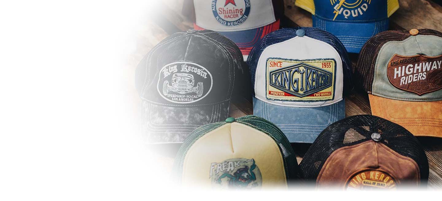 Desde su cochera, a King Kerosin se le ocurrió la idea asociar la pinta del motero al estilo rock'n'roll y así crear su propia línea en la moda. Muy varonil pues, sus looks son súper auténticos, verdaderamente creativos y ultra streetwear. Espectaculares por la originalidad y por su apariencia más bien cruda, están ganando popularidad entre el mundo de la sombrerería.