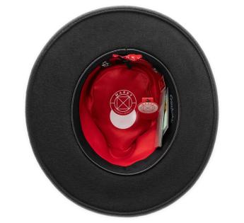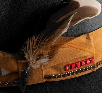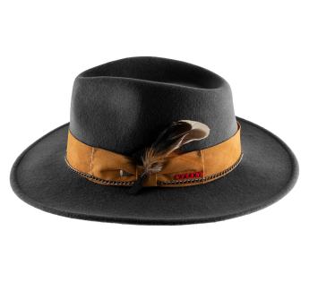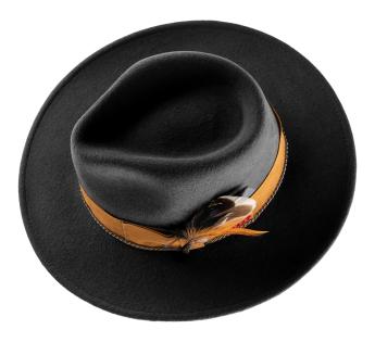 La asociación de materias es una de las tendencias está temporada. Compruébelo usted mismo con esta combinación fieltro/ante bien pensado. El resultado es un sombrero clásico relevado por una cinta del color natural alegre que muestra pespuntes, fantasía y una pluma. Aprovechamos así una creación a la cual ha sido añadido un bonito toque de brillo.