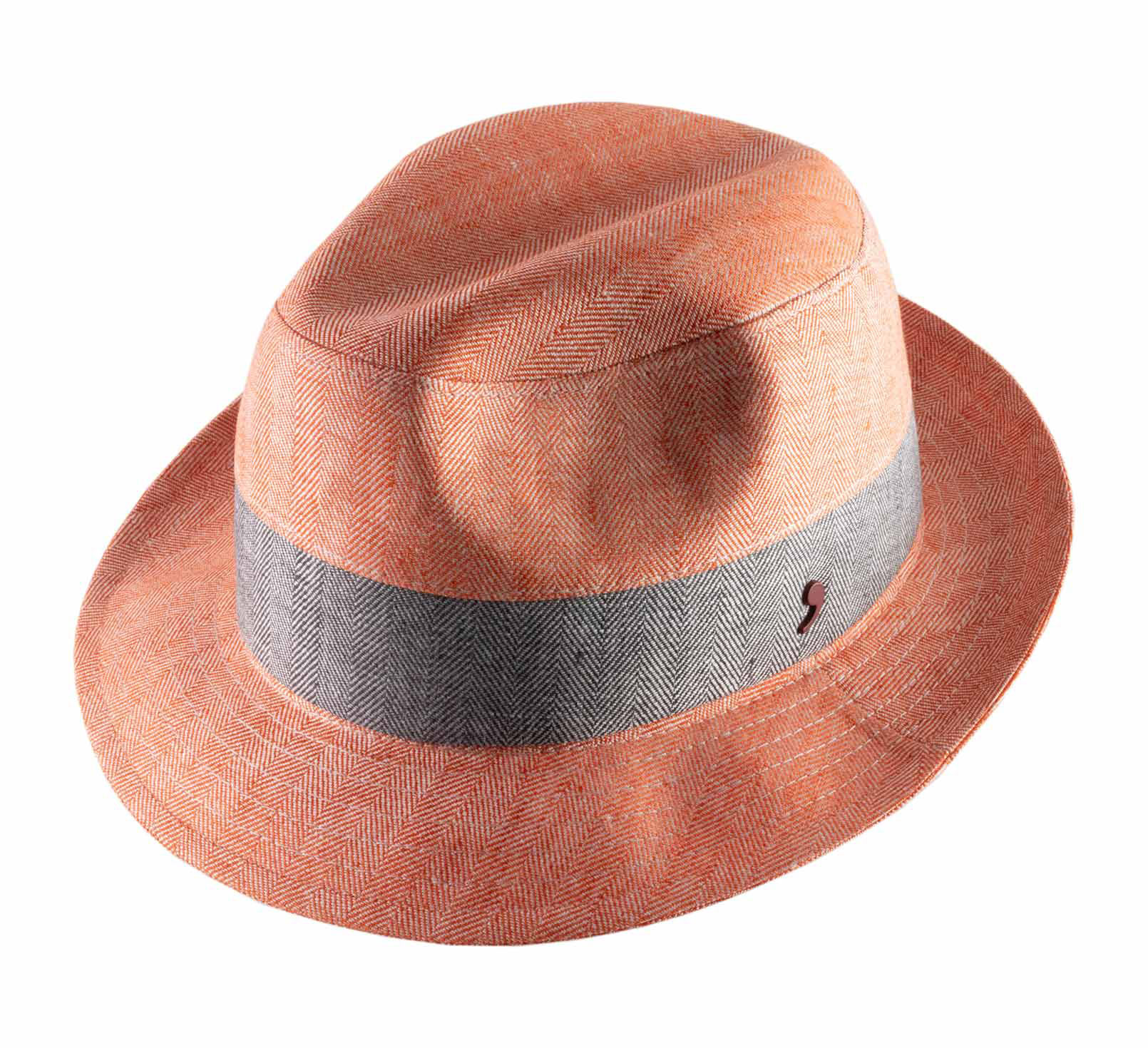 Sombrero Player confeccionado en un tejido de finos motivos de espiguillas. Su copa es doblemente pinchada para una toma fácil. Su ala puede adaptarse según nuestros gustos.