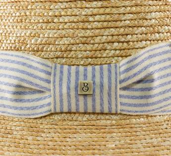 Calidad y profesionalismo enmarcaron un saber hacer ancestral para crear este magnífico canotié. Su paja agradable y refinada es realzada con una cinta de algodón rayado que recuerda las playas des Planches de Deauville. Su colores sobrios y naturales pueden combinarse con una multitud de vestidos estivales, desde el más sofisticado hasta el traje de baño.