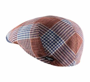 Esta gorra de la casa Marone está confeccionada en un hermoso motivo de tartán, tan clásico como actual gracias a sus cálidos matices terracota.