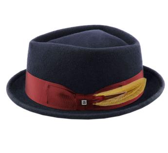 Su sombrero porkpie para personalizar: 8 colores de fieltro, 50 cintas a elección y 10 plumas a añadir...lo que nos da 4.000 posibilidades. ¡Le toca a usted ahora!