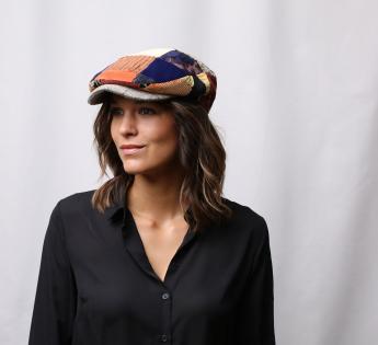 Gorra de invierno cubierta de un patchwork de terciopelo. Un ensamblaje de diferentes colores, texturas, materias y relieves que habrá dado a esta creación la apariencia de un cuadro de arte. Destácate verdaderamente gracias a su concepción original y diferente que aportará bienestar y facilidad de utilización.
