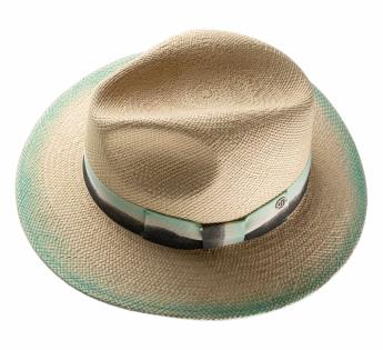 Un Sombrero panama de encanto solar. La paja, finamente trenzada en Ecuador, revela toda la nobleza de este saber hacer emblemático. Naturalmente transpirable, ayuda a mantener una agradable sensación de frescura en los días bañados de sol. La forma se realiza en Italia para una silueta nítida y elegante. ¿Su originalidad? Un suave degradado aplicado sobre el ala, en perfecta armonía con la trenza. Un efecto tie and dye sutil y luminoso, que atrae la mirada sin excesos.