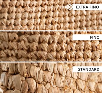 100 % Paja de rafia finamente tejida a ganchillo (Extra Fino). Un trabajo artesanal minucioso que confiere al sombrero una flexibilidad excepcional y una textura densa, capaz de filtrar la luz y seguir siendo transpirable.