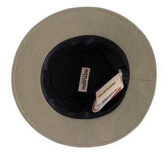 Este sombrero de cubo va mucho más allá de lo esencial. Bajo su línea depurada, incorpora auténtica tecnología textil con su membrana Sympatex®, concebida para ofrecer una barrera eficaz contra la lluvia y el viento, permitiendo al mismo tiempo que la humedad corporal se evacue.