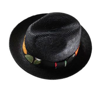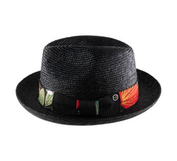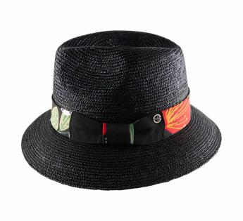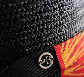 Un sombrero de múltiples facetas que baila con la luz estival. Su cinta de motivos vegetales juega con diseños abstractos, contrastados y llenos de color.