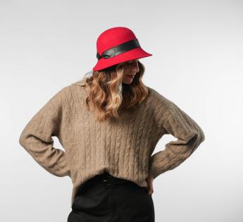 Elegante y femenino, este Campana de lana afieltrada seduce con su línea retro y su silueta envolvente. Está acentuado por adornos de cuero flexible, elegantemente pellizcados para aportar carácter al conjunto.