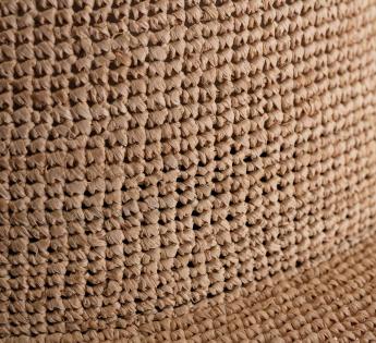 100 % Paja de rafia, fibra natural apreciada por su ligereza y encanto auténtico.