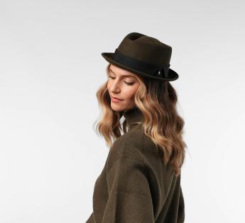 Confeccionado en fieltro de lana, ofrece estructura, comodidad y una sujeción perfecta. Su forma típica de copa plana y tesa alzato afirma un look moderno, a la vez que sigue siendo accesible y fácil de llevar. Un sombrero con un carácter bien definido, pensado para quienes aman afirmar su estilo sin exagerar.