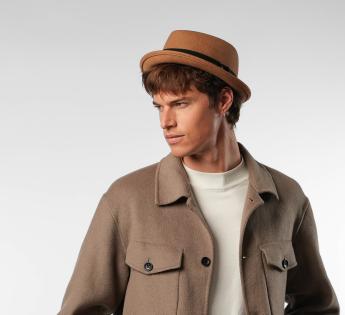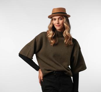Confeccionado en fieltro de lana, ofrece estructura, comodidad y una sujeción perfecta. Su forma típica de copa plana y tesa alzato afirma un look moderno, a la vez que sigue siendo accesible y fácil de llevar. Un sombrero con un carácter bien definido, pensado para quienes aman afirmar su estilo sin exagerar.