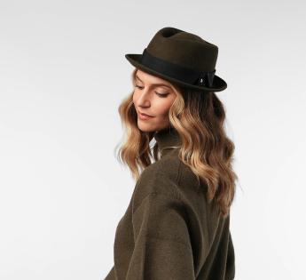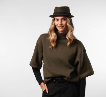 Confeccionado en fieltro de lana, ofrece estructura, comodidad y una sujeción perfecta. Su forma típica de copa plana y tesa alzato afirma un look moderno, a la vez que sigue siendo accesible y fácil de llevar. Un sombrero con un carácter bien definido, pensado para quienes aman afirmar su estilo sin exagerar.