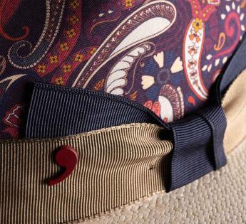 Sombrero panama en una forma traveller. Es verdaderamente elegante gracias a su acabado minucioso y a su obra artesanal de alto nivel. La copa es destacada por motivos Paisley; lo que aporta un toque de refinamiento y de originalidad.