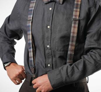 El motivo tartán juega con tonos profundos y cálidos para un resultado a la vez audaz y sofisticado. La tela texturizada ofrece comodidad y sujeción, mientras que los acabados en cuero aportan un toque vintage controlado. Entregados en una caja sobria, estos tirantes son un regalo de elección o un activo de estilo diario. Para llevar con camisa, chaleco o pantalones de cintura alta para un look perfectamente equilibrado.
